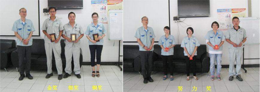 通过认真,慎重的评比,品保部生技科、制造部物流班、制造部生管科分别获得本次活动的金奖、银奖和铜奖,其余四个小组获得努力奖。